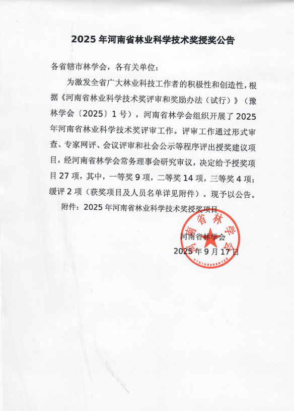 2025年河南省林业科学技术奖授奖公告