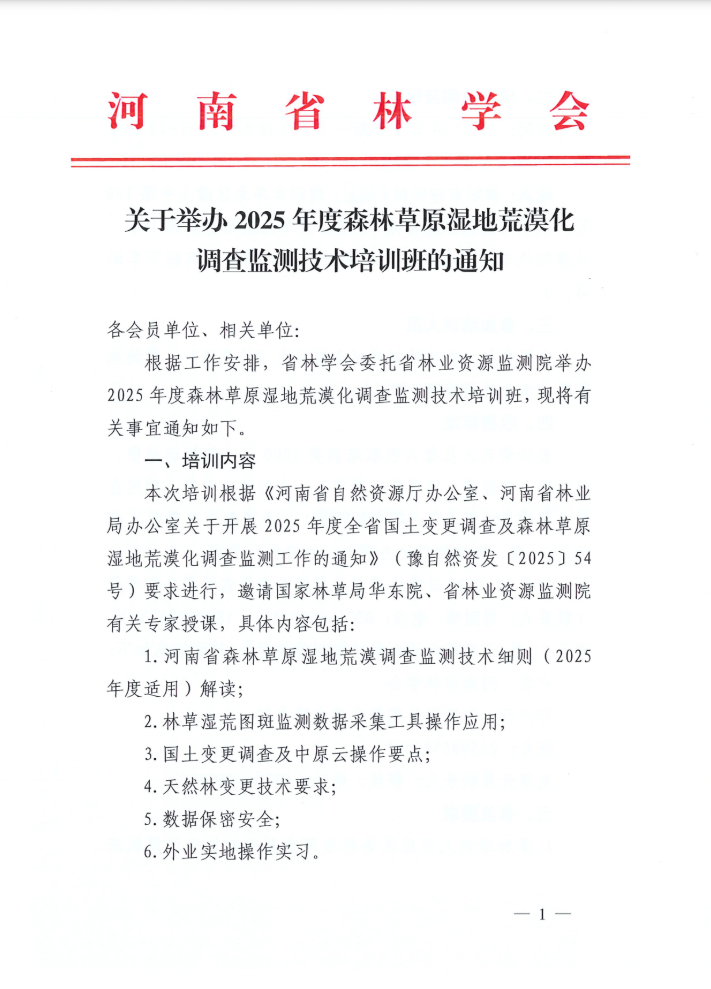 关于举办2025年度森林草原湿地荒漠化调查监测技术培训班的通知