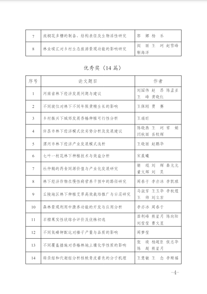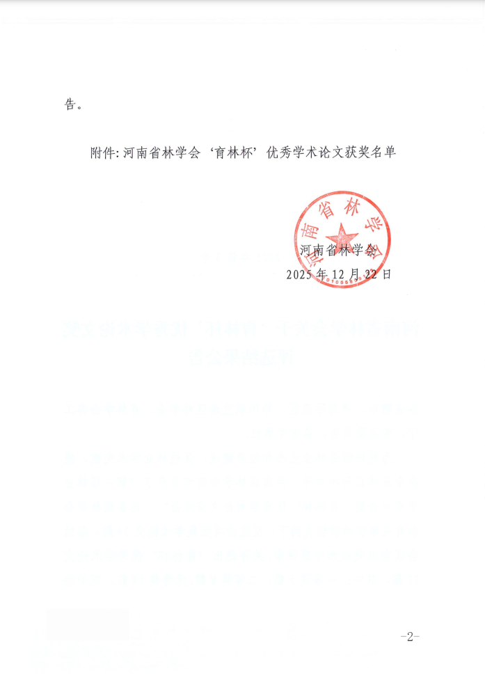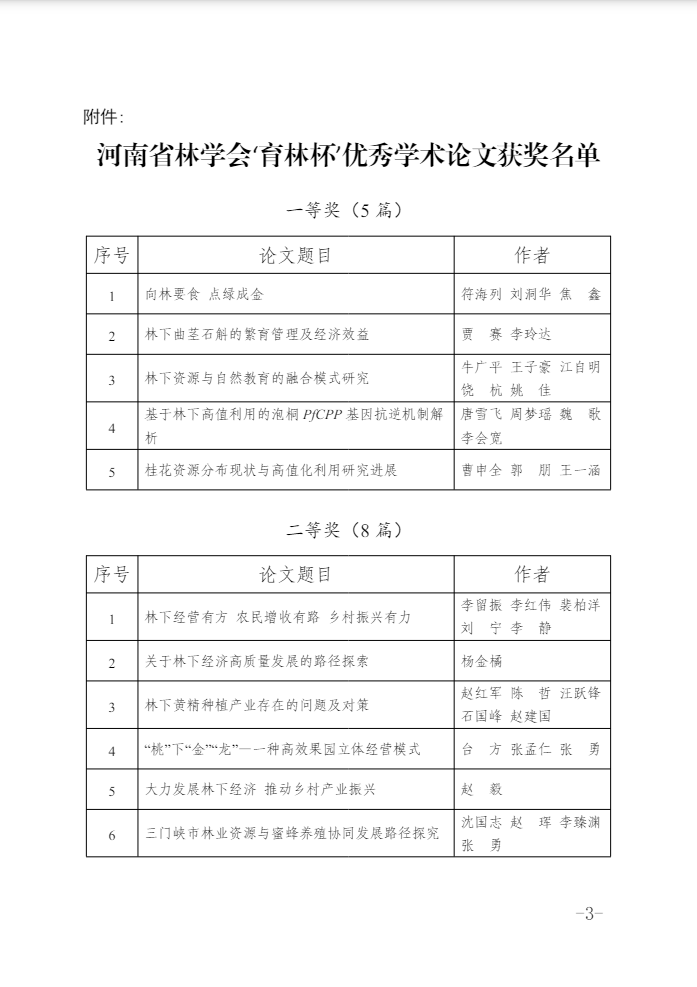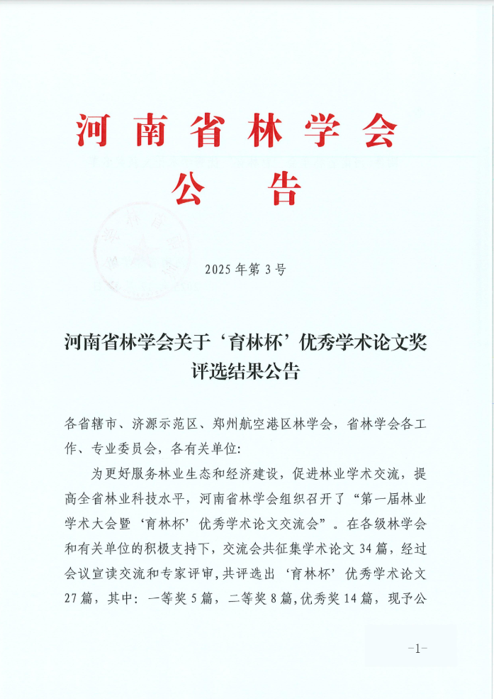 河南省林学会关于'育林杯'优秀学术论文奖评选结果公告