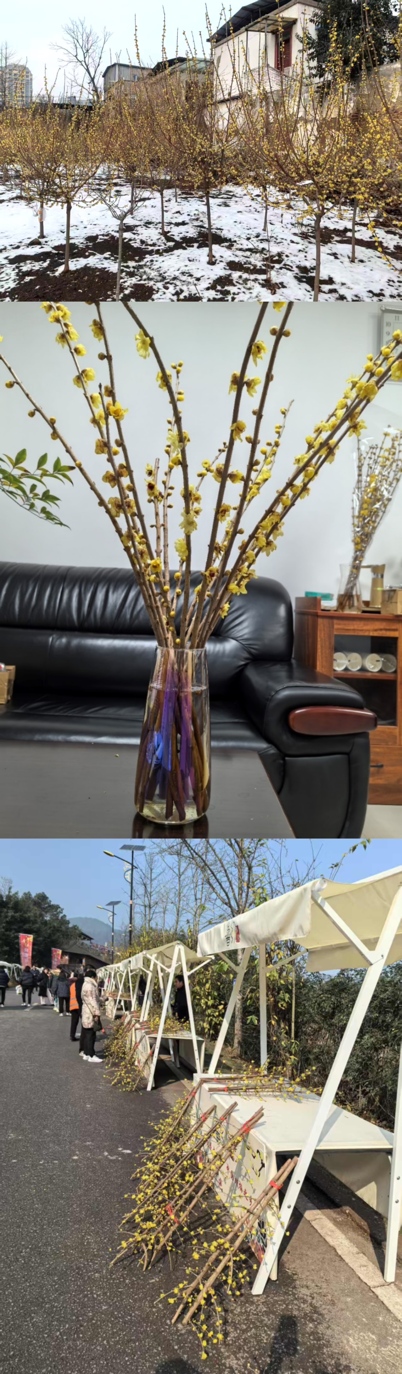 近些年,随着电商直播等新业态的兴起,进一步拓宽了传统花木的销售渠道和影响力。蜡梅切花也在此机遇下迅速走红,广为人知,已成为元旦、春节期间烘托节日氛围的热门花卉,优质产品供不应求。比如蜡梅主产区河南鄢陵,优质蜡梅切花产品每年早早销售一空,产能远不能满足市场需求;重庆静观镇持续多年大力发展蜡梅切花产业,有效带动农户增收致富,为乡村振兴注入了活力。