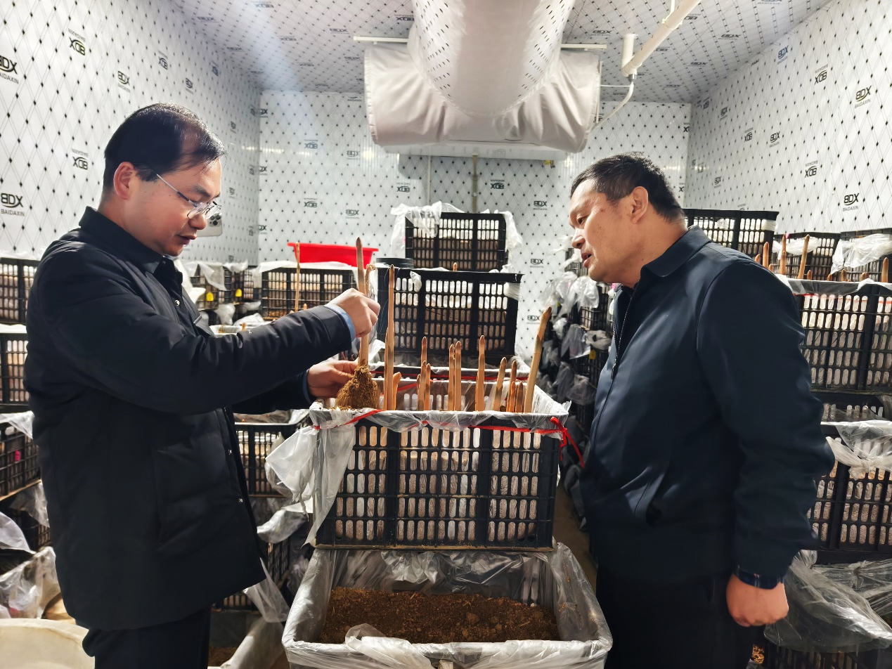 调研组重点走访了天麻、淫羊藿等特色中药材育苗企业与林下种植示范基地,详细了解当地中药材品种选育、生态种植、标准化育苗、产业链延伸等核心环节,现场观摩了“林药蜂”立体发展、代料生态种植等先进技术,学习了科技促进产业、产业致富林农的科产融合发展模式 ,深刻体会了五峰依托林地资源发展特色中药材产业,实现生态保护与经济增收双赢的实践成果。调研组还深入五峰长乐坪镇等深山区开展五峰玉兰、红花木莲、纤细卫矛、伯乐树、通脱木、榉树等林木种质资源实地调查,先后与五峰博翎种业有限公司、五峰瀚林林业开发有限公司开展座谈交流,围绕种质资源收集保护、种苗繁育、林下经济创新发展等议题深入研讨,进一步明晰了双方合作的契合点与发力点。
