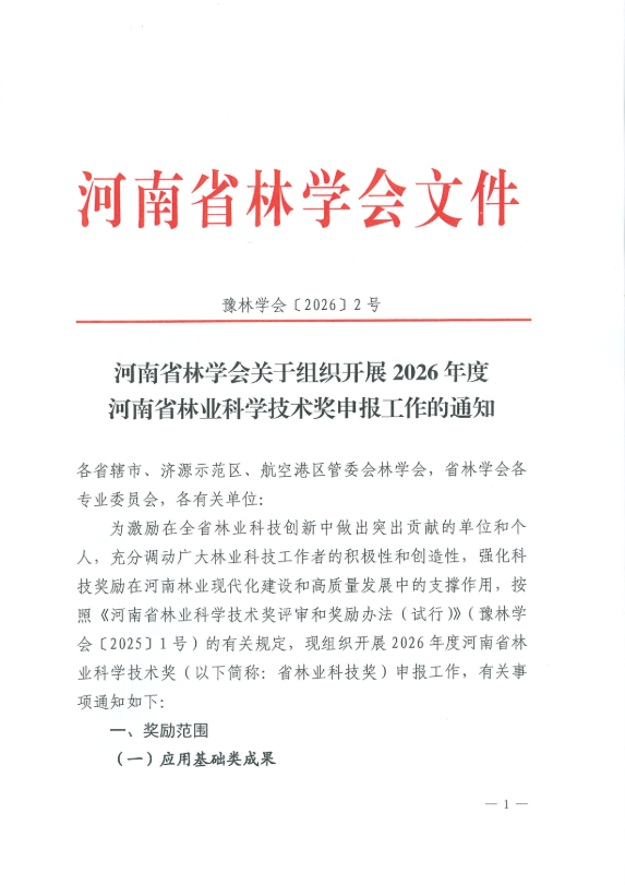 河南省林学会关于组织开展2026年度河南省林业科学技术奖申报工作的通知