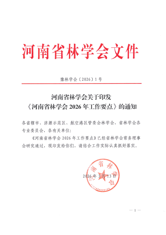 河南省林学会关于印发《河南省林学会2026年工作要点》的通知